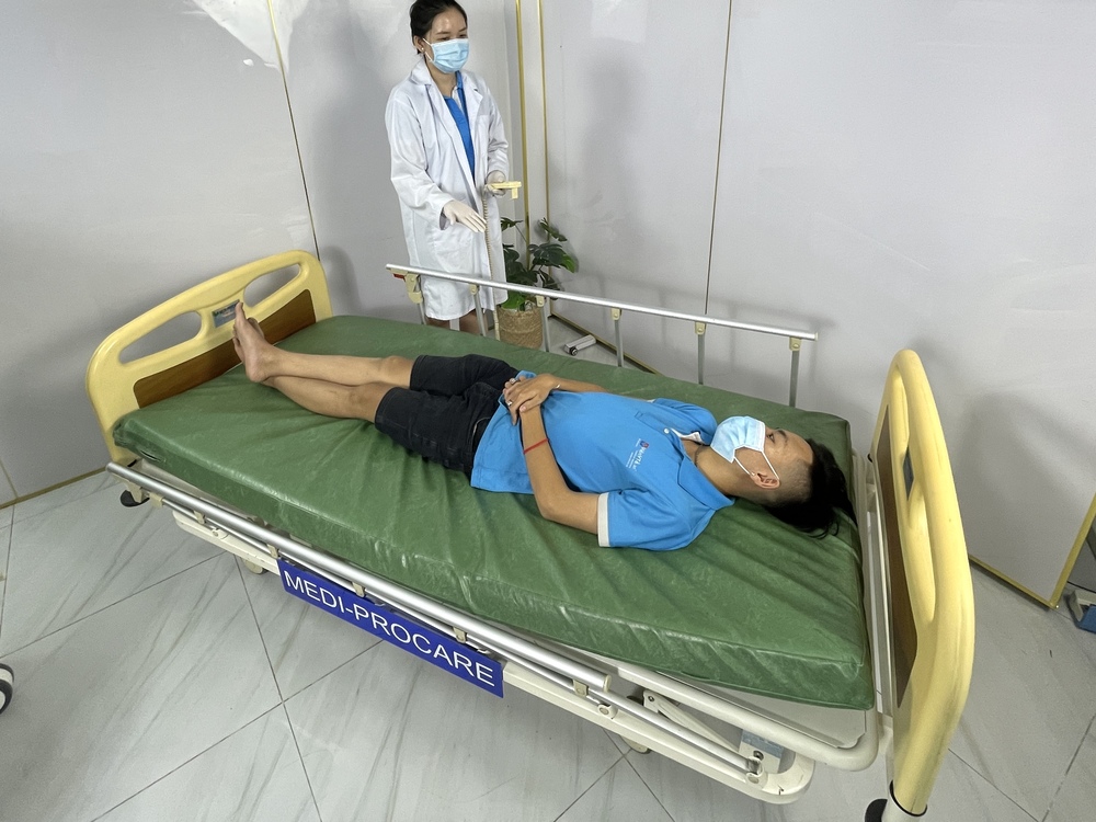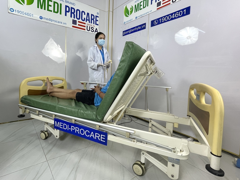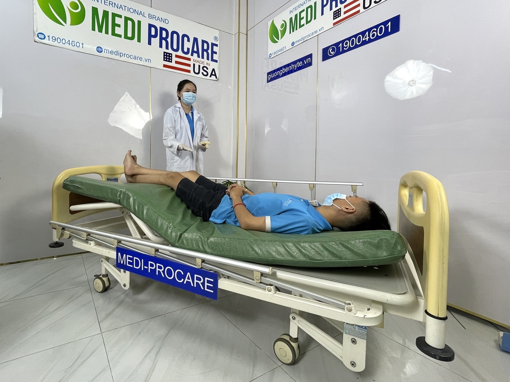 Với thiết kế điện tử thông minh, giường có khả năng nâng – hạ chiều cao, điều chỉnh lưng, đầu, chân giường bằng điều khiển, giúp người bệnh thay đổi tư thế dễ dàng, tránh loét da, giảm mỏi cơ và hỗ trợ phục hồi nhanh hơn.