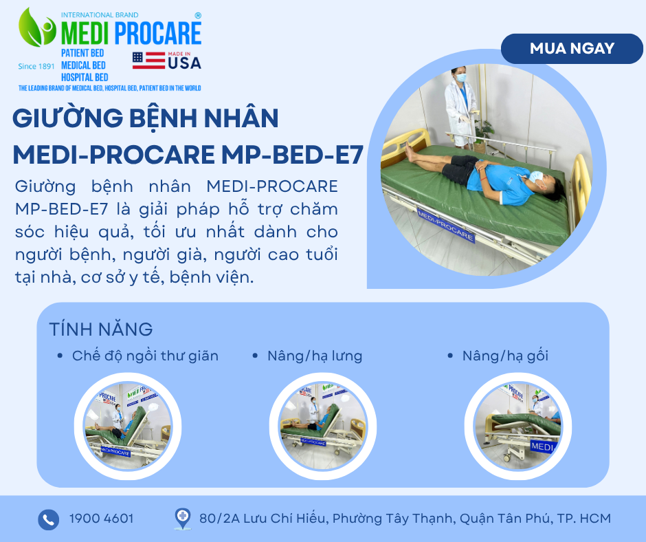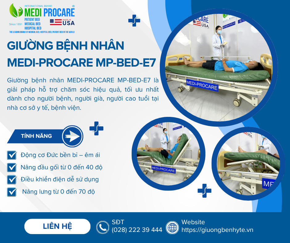 Giường y tế MEDI-PROCARE MP-BED-E7 là biểu tượng của chất lượng, độ bền và sự tiện nghi, giúp Quý khách hàng chăm sóc người thân an toàn – khoa học – nhân văn.