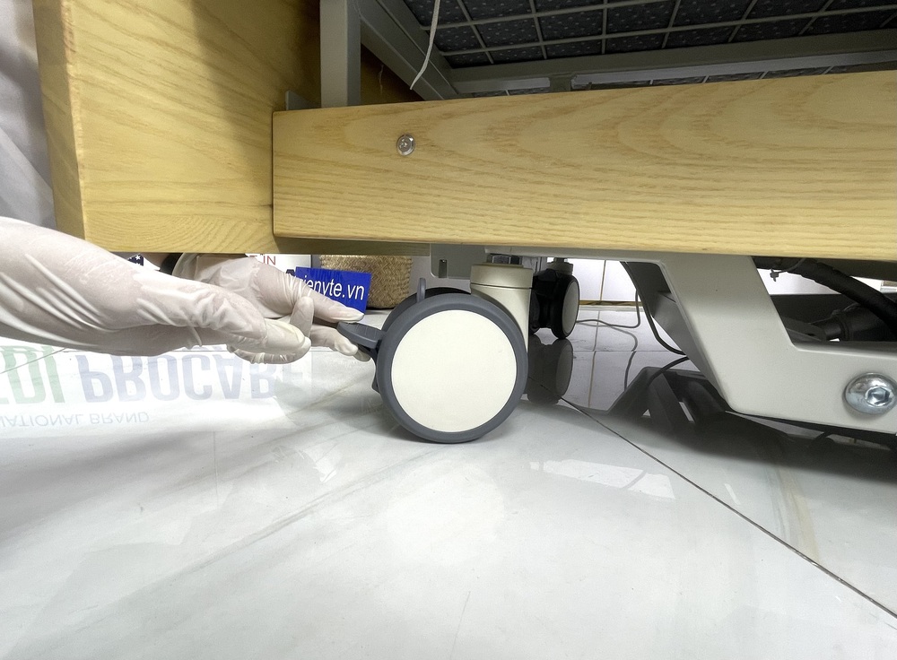 Thiết kế bánh xe giúp giường dễ dàng di chuyển khi cần thiết, đồng thời có khóa an toàn chống trượt trong quá trình sử dụng.